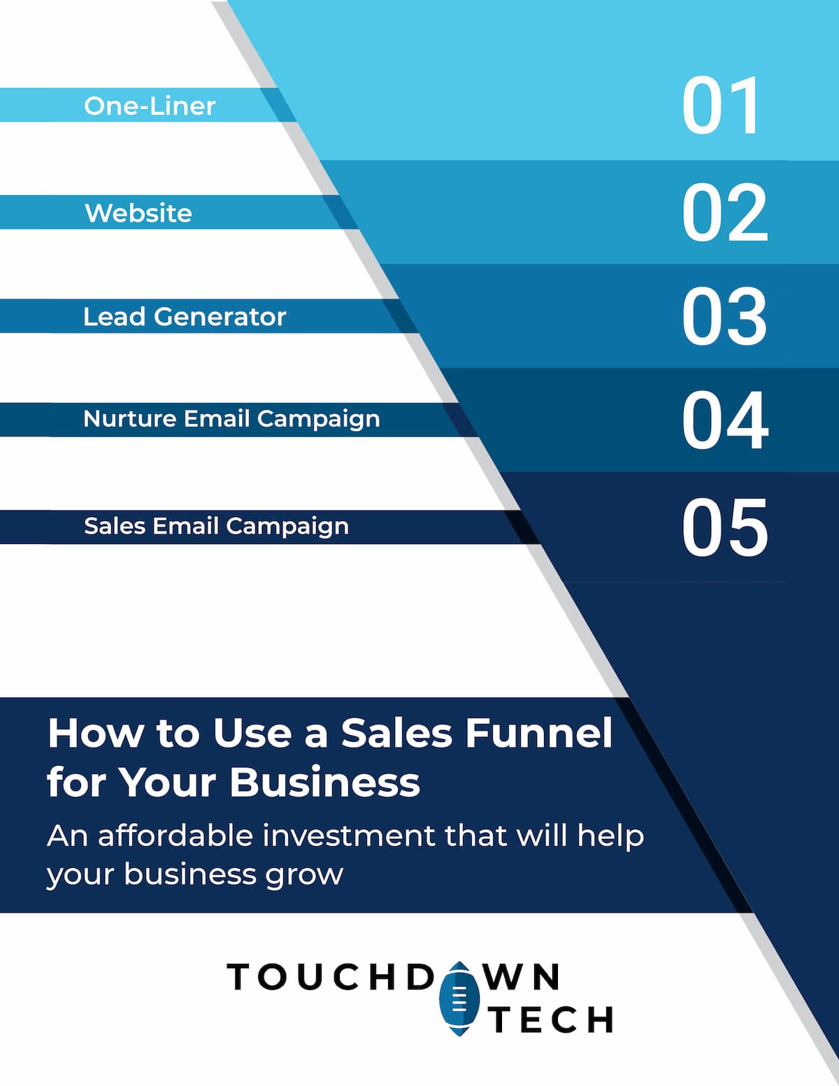 A sales funnel is an affordable way to drive new customers to your business. Download our PDF with the 5 parts or a successful funnel.